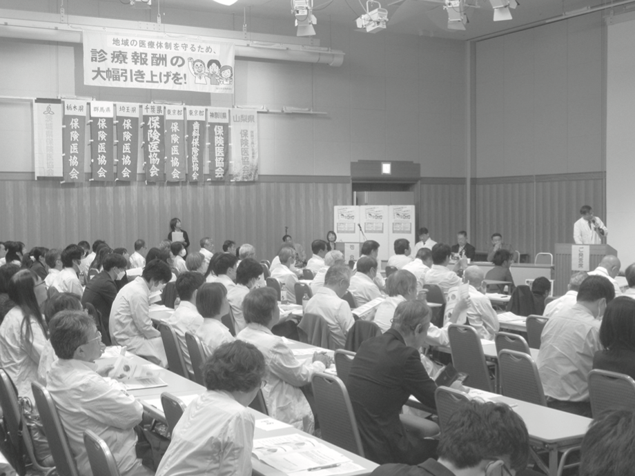 集会では、関東ブロック各協会会員を対象に行った「医療機関経営実態調査」のまとめが報告され、医療機関がおかれている厳しい現状を明らかにした。
